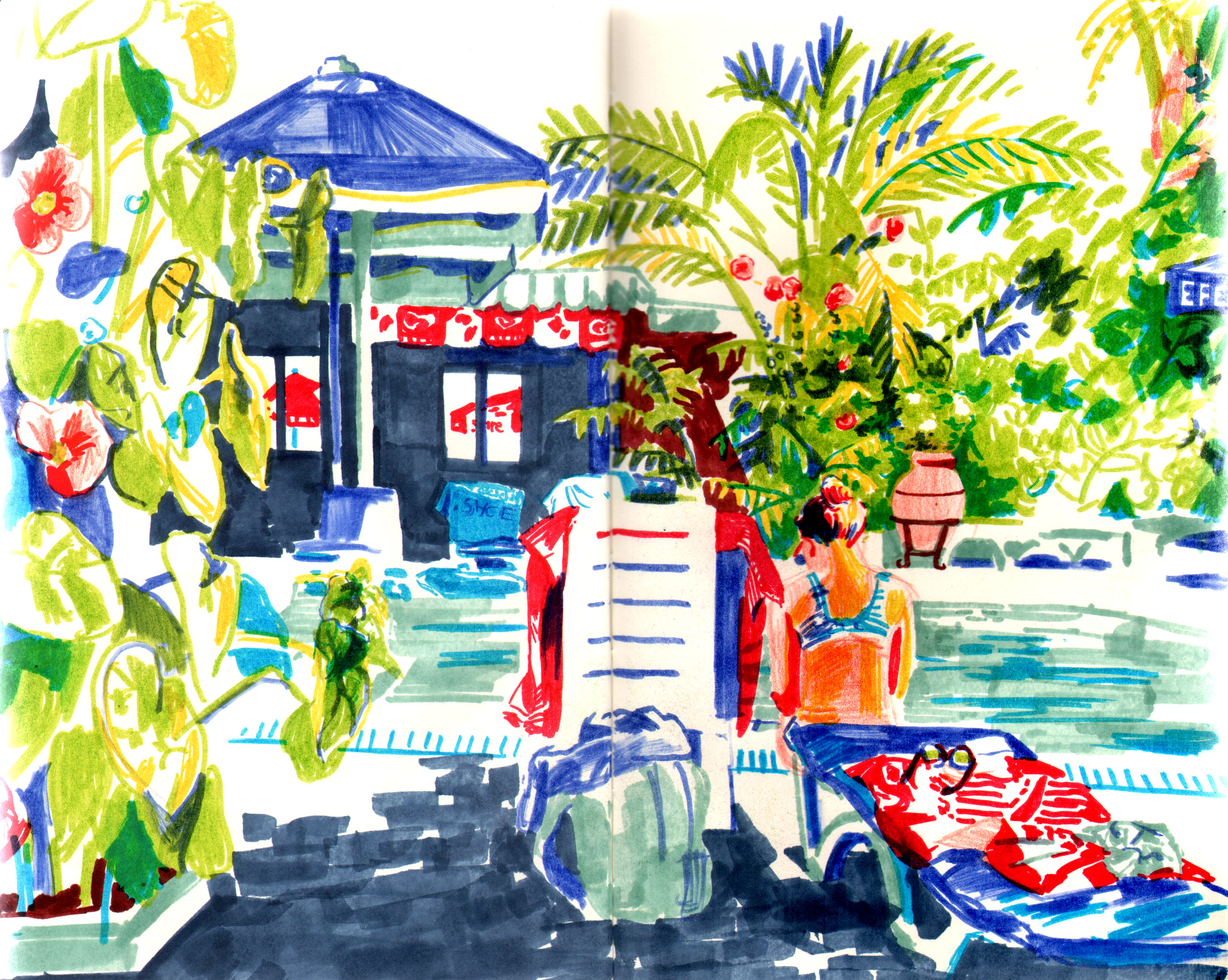 When I’m on holiday, I like to take my sketchbook with me and just sketch what I see in front of me. It’s my way to organize impressions.
